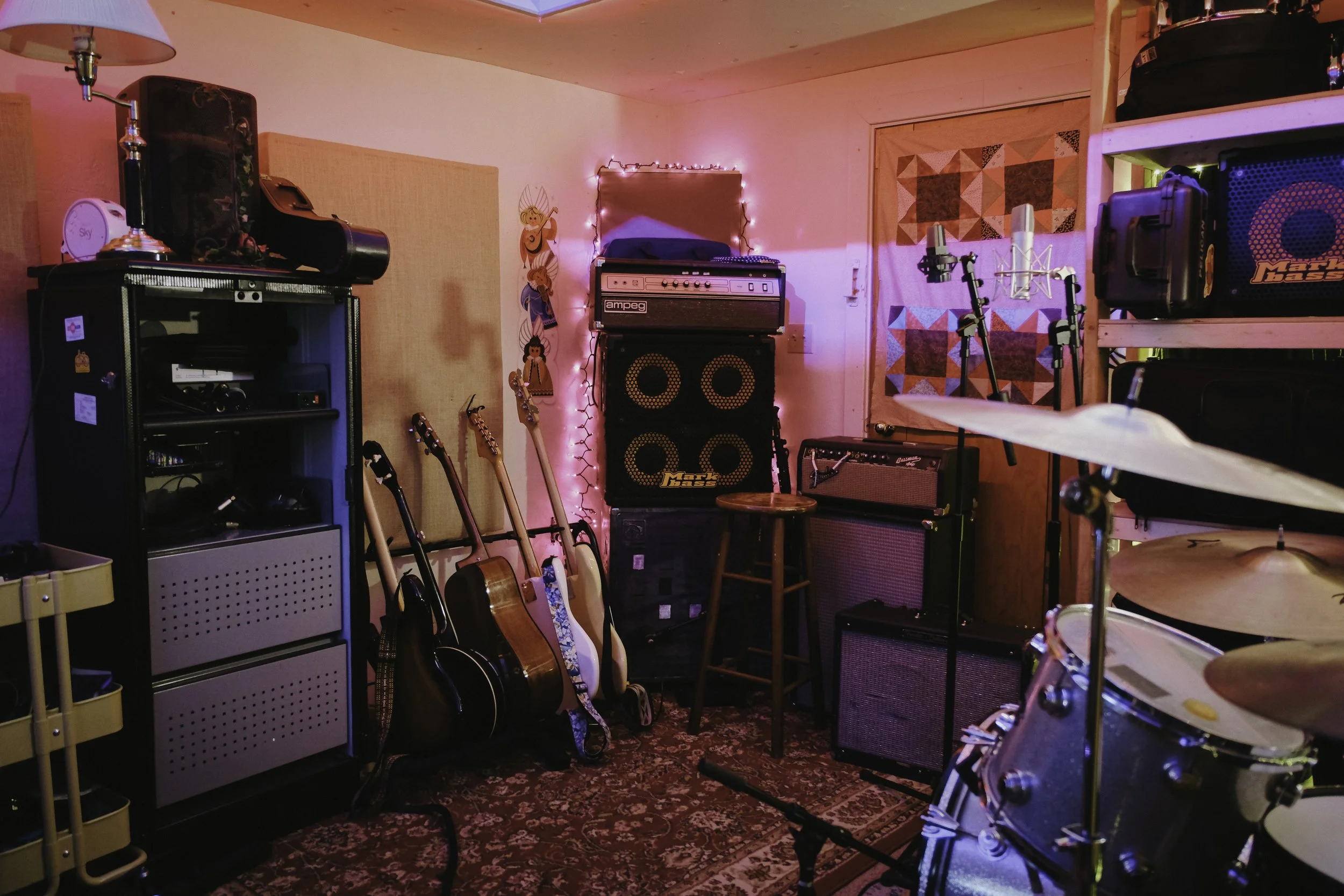 -Various instruments: 1970’s DW Drum Kit, Pearl Forum Drum Kit, Calla’s “Catalog Kit” from the 80s, Fender Bassman (1960’s), Fender Deluxe, Electro-Harmonix MIG-50, Ampeg V4B (1970’s), Fender P-Bass (2019), G+L Tribute L-2500, Fender Jazzmaster, Fender Concert Acoustic Guitar, Reverend Pete Anderson Telecaster, Minilogue XD, Microkorg, and many more!